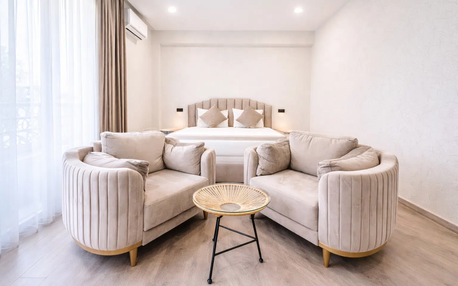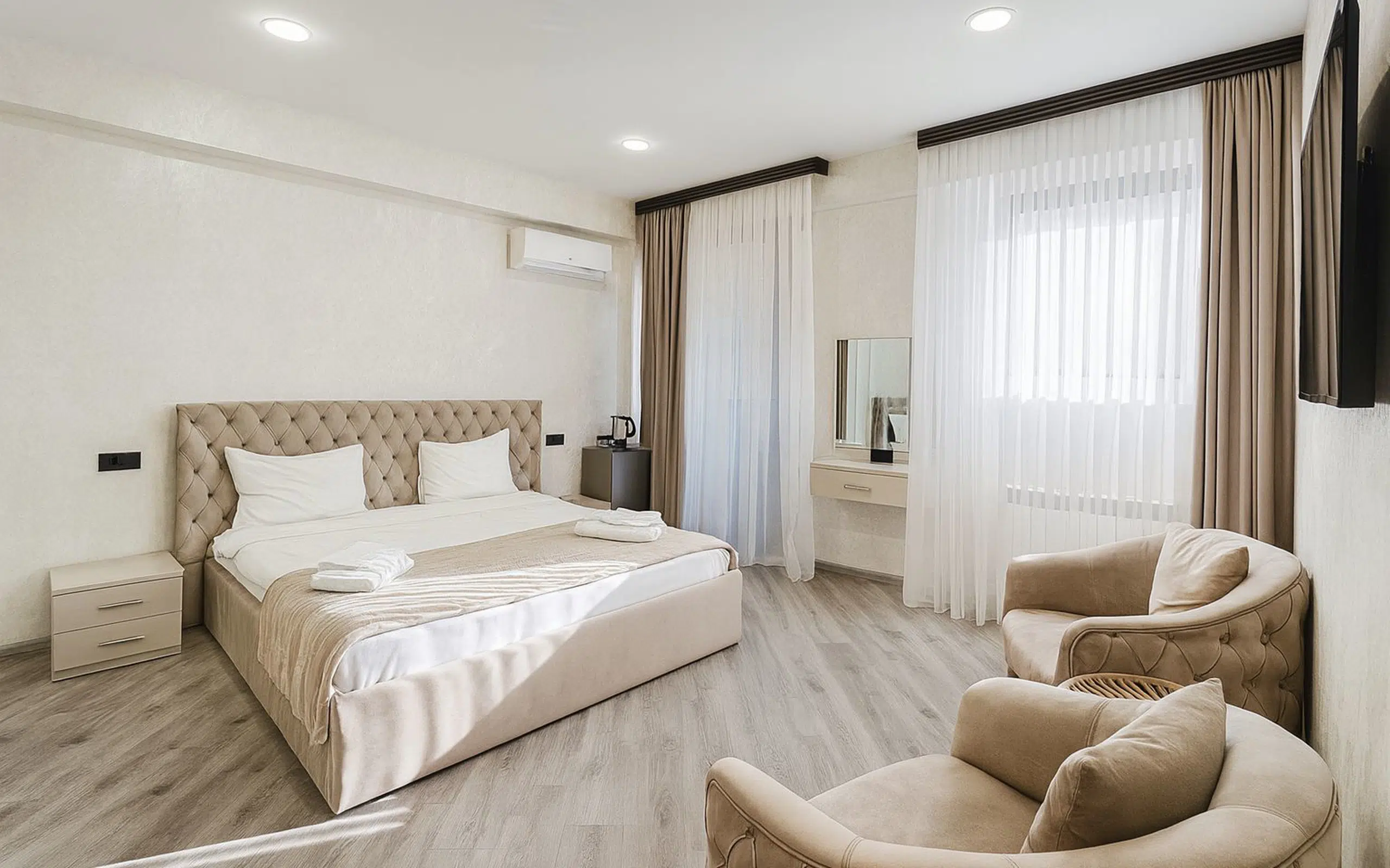 Royal Renaysance is a 4—star hotel in Yerevan, 1 km and 1.3 km, respectively, from attractions such as Republic Square and the Armenian Academic Opera and Ballet Theater. Nearby attractions include St. Gregory the Illuminator Cathedral, Yerevan Brandy Factory and the Cascade Architectural Complex. Guests can contact the 24-hour front desk, take advantage of airport shuttle or food and drink delivery, and connect to free Wi-Fi throughout.At the Royal Renaissance, all rooms are equipped with air conditioning, a safe and a flat-screen TV with satellite channels. There is also a seating area, a kitchen, a dining area and a private bathroom with a shower, free toiletries and a hairdryer. The private bathroom comes with slippers. Bed linen and towels are provided for Royal Renaissance guests.